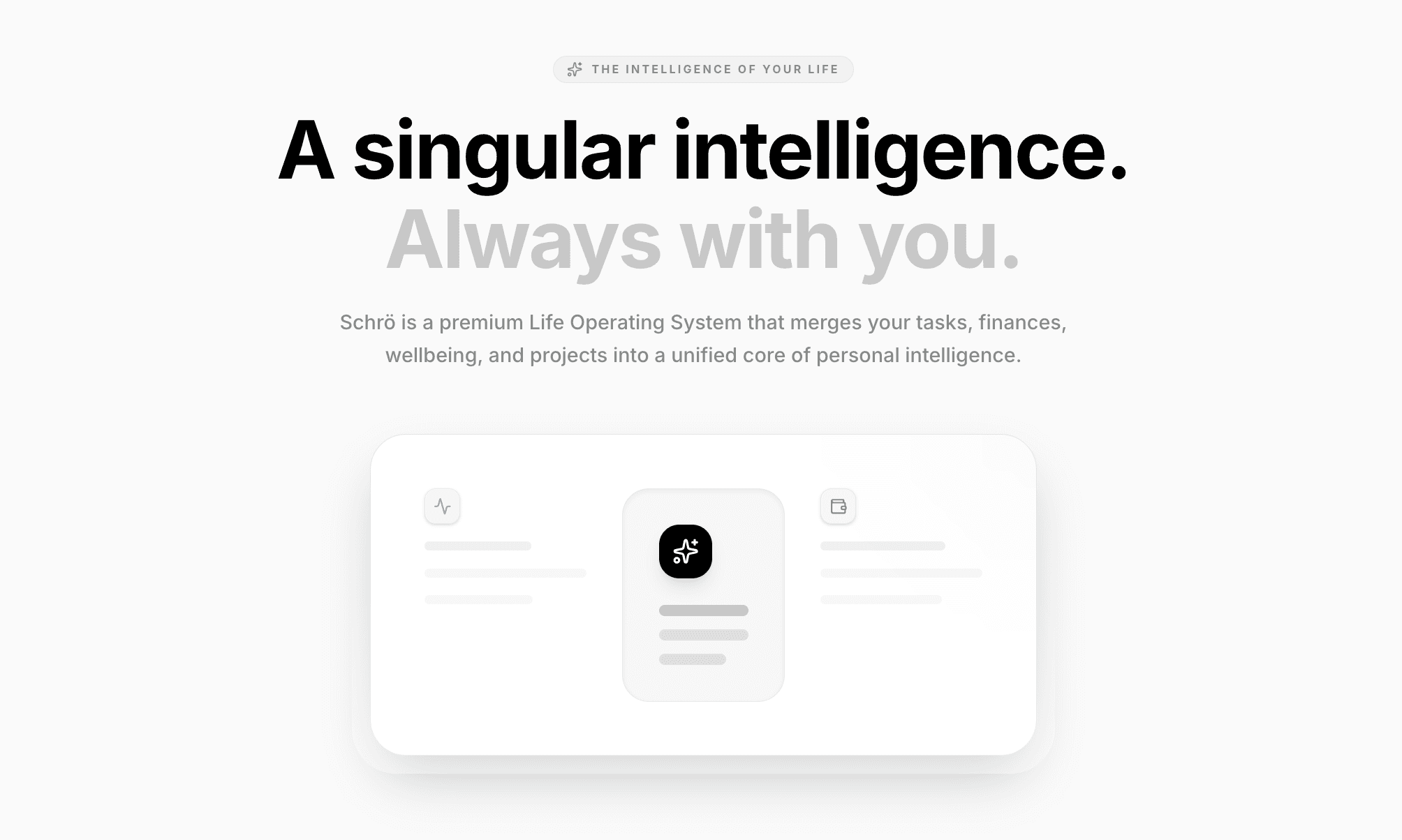 Schrö is a premium Life Operating System that merges your tasks, finances, wellbeing, and projects into a unified core of personal intelligence.